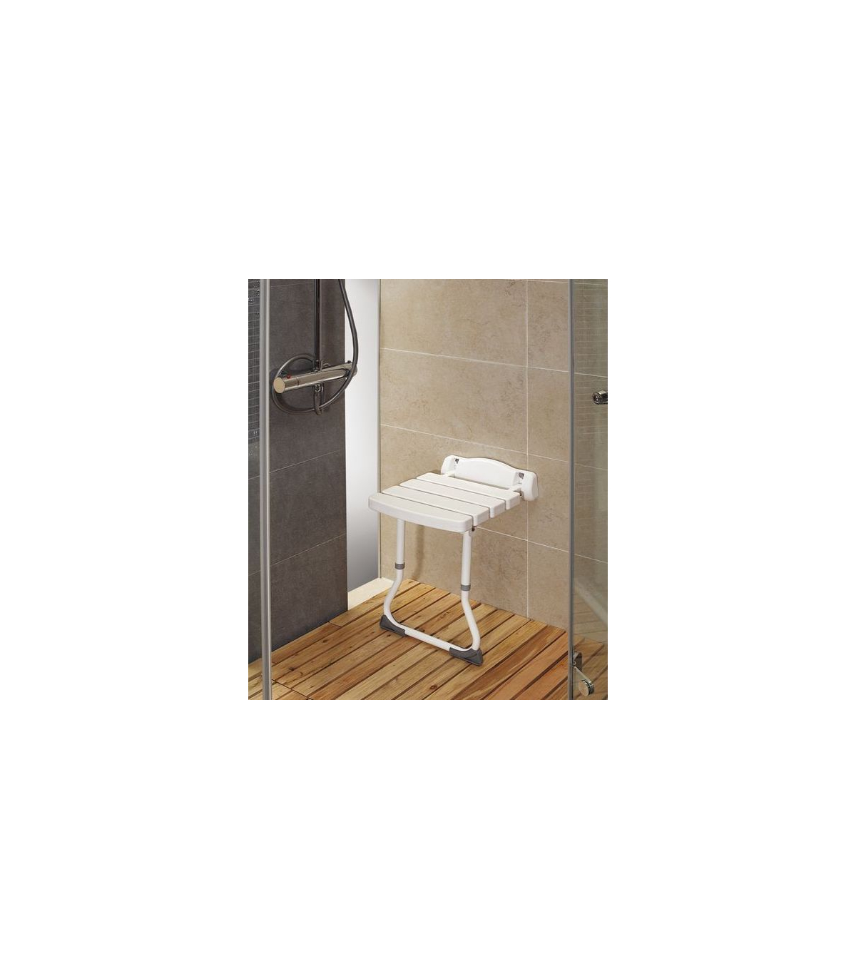 Le siège de douche mural rabattable Mayotte appelé aussi "Strapontin", permet de faciliter la toilette des personnes à mobilité réduite. En effet, il offre au patient la possibilité de se doucher en toute sécurité, en position assise.