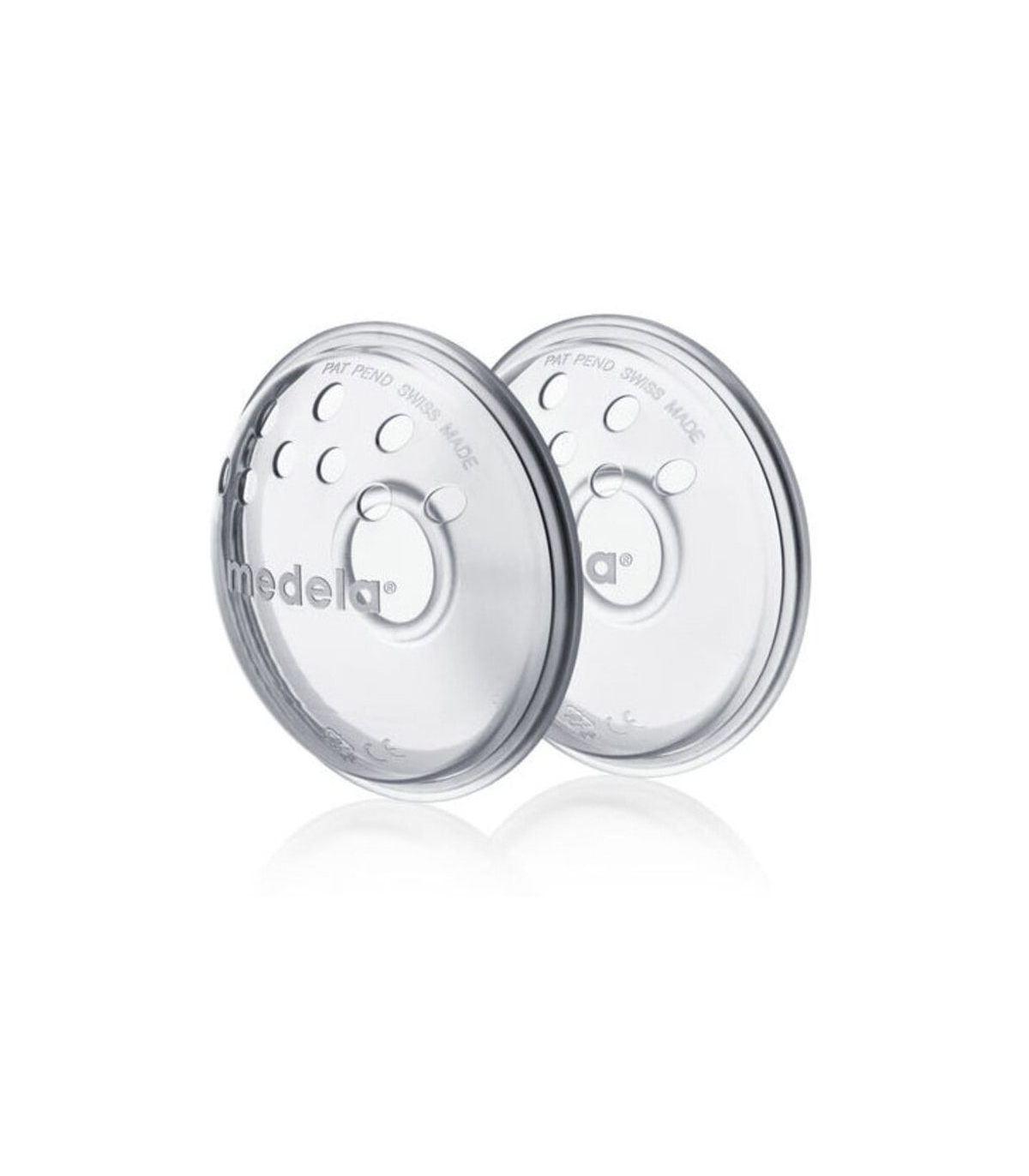 Les forme-mamelons Medela conçues pour protéger vos mamelon pendant l'allaitement se divisent en deux parties : Une membrane douce en silicone souple, confortable à même la peau et une coque externe percée d'orifices dans sa partie supérieure pour laisser circuler l'air et éviter tout excès d'humidité.