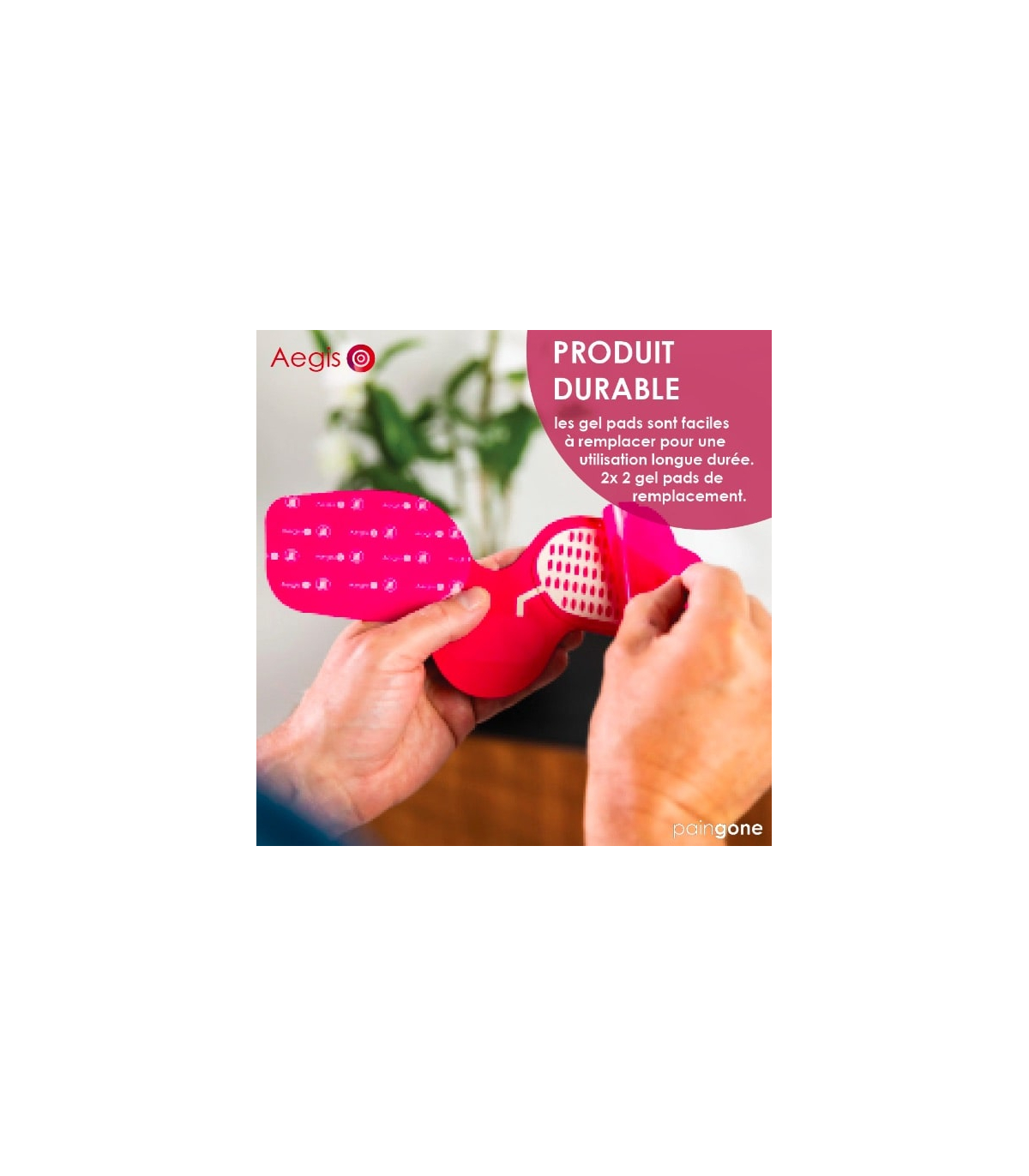 Pour l’appareil anti-douleur Paingone AEGIS, il faut changer les électrodes adhésives gel pads lorsque leur pouvoir adhésif diminue et qu’ils ne collent plus correctement à la peau, c’est essentiel pour que l’appareil continue à transmettre efficacement les impulsions thérapeutiques. Les gel pads AEGIS sont conçus pour durer jusqu’à environ 3 mois d’utilisation normale, en fonction de la fréquence d’usage et des soins apportés.