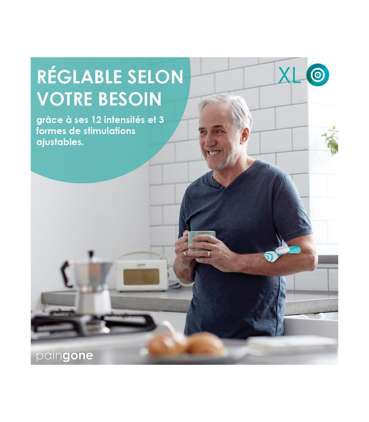 L'appareil anti-douleur Paingone XL est conçu pour soulager les douleurs chroniques et/ou aiguës. Ce produit qui soulage rapidement les douleurs au quotidien est à utiliser sur les cuisses, les épaules ou encore les genoux.