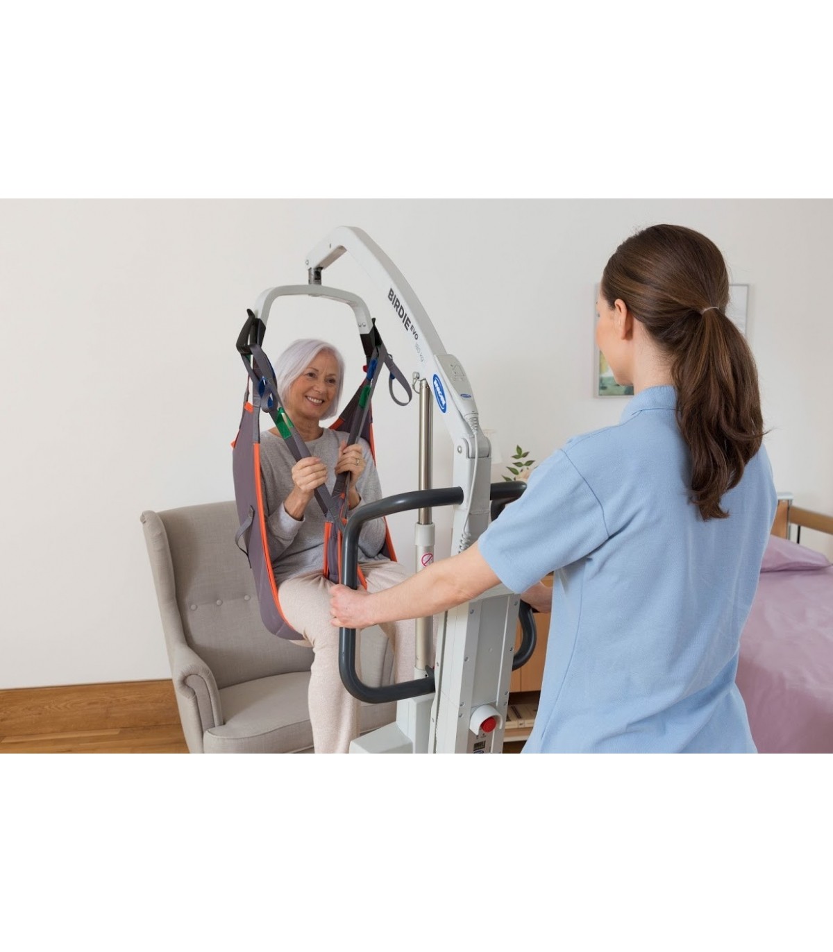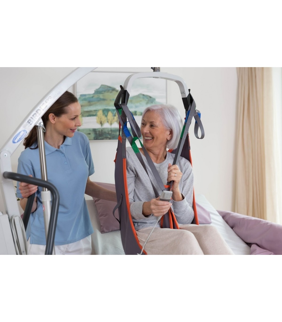 Le soulève malade Birdie Evo Compact garanti à l'utilisateur confort et sécurité lors du levage et des transferts au lit ou depuis le lit, depuis une chaise ou depuis le sol.