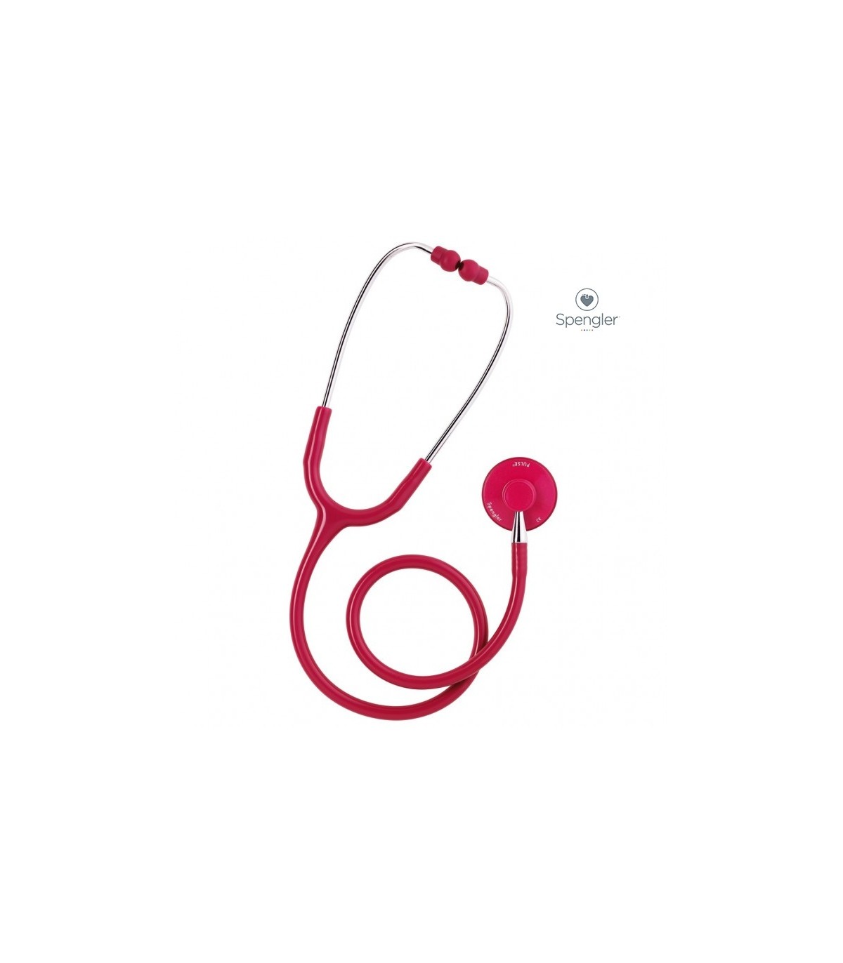 Le stéthoscope Pulse de la marque Spengler comporte des embouts auriculaires et des lyres ergonomiques.