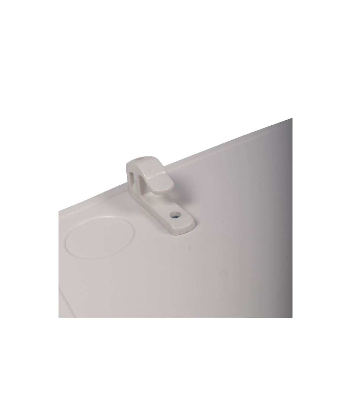 La table à poser sur les barrières du lit médical Slide est équipée de deux crochets pour la suspendre contre la barrière lorsqu'elle n'est pas utilisée.