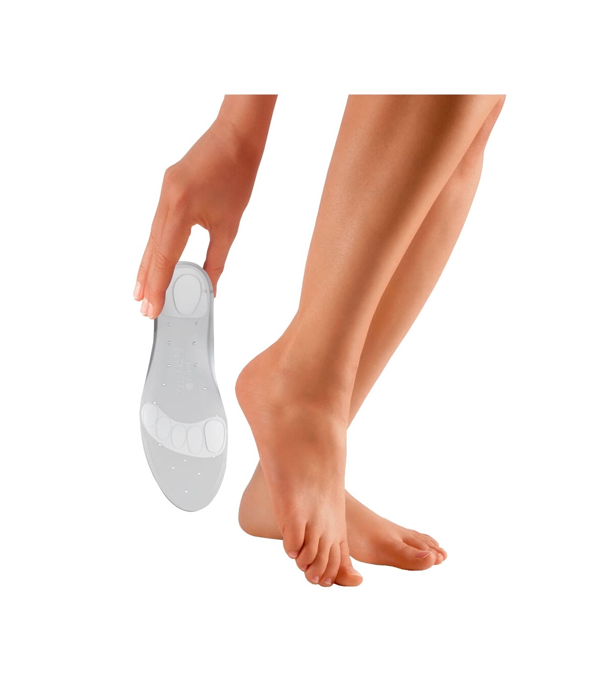 Elles sont équipées de coussinets souples au niveau des têtes métatarsiennes et du calcanéum, réduisent les chocs subis par ces zones sensibles et soulagent ainsi les douleurs.
