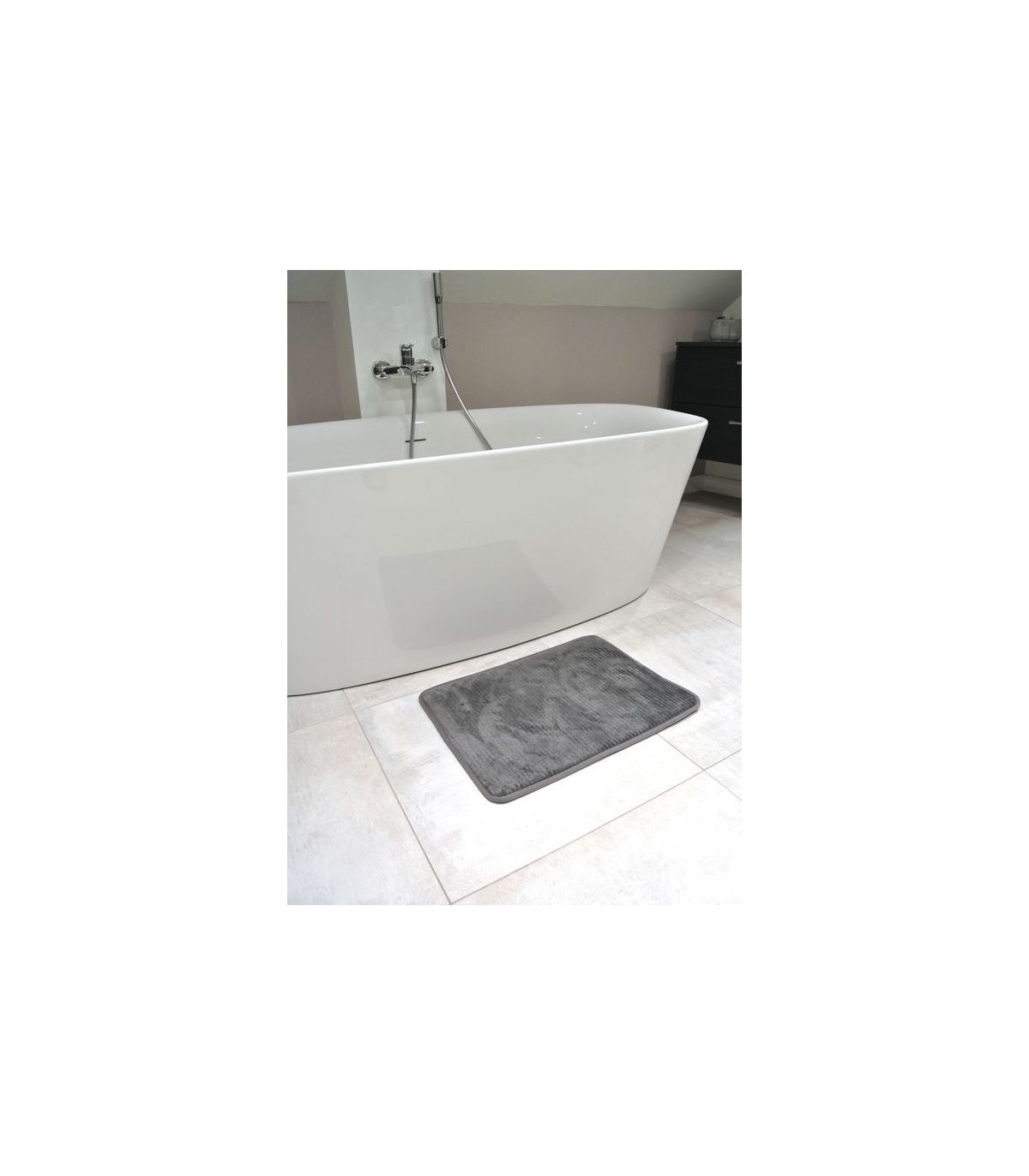 Le tapis de bain à mémoire de forme Secure Soft est proposé en coloris blanc ou gris anthracite.