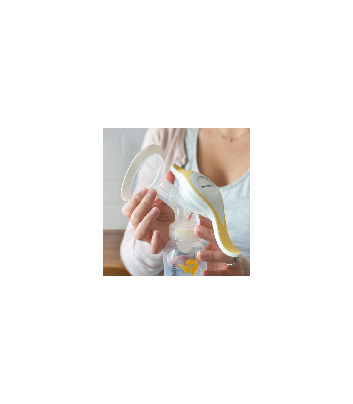 De plus, il est équipé d'une poignée ergonomique pivotante très pratique. Dans un premier temps, nous vous conseillons d'utiliser le côté court de la poignée pour stimuler l'écoulement du lait. Une fois que vous voyez les premières gouttes de lait coulées, utilisez le côté long de la poignée pour exprimer votre lait.