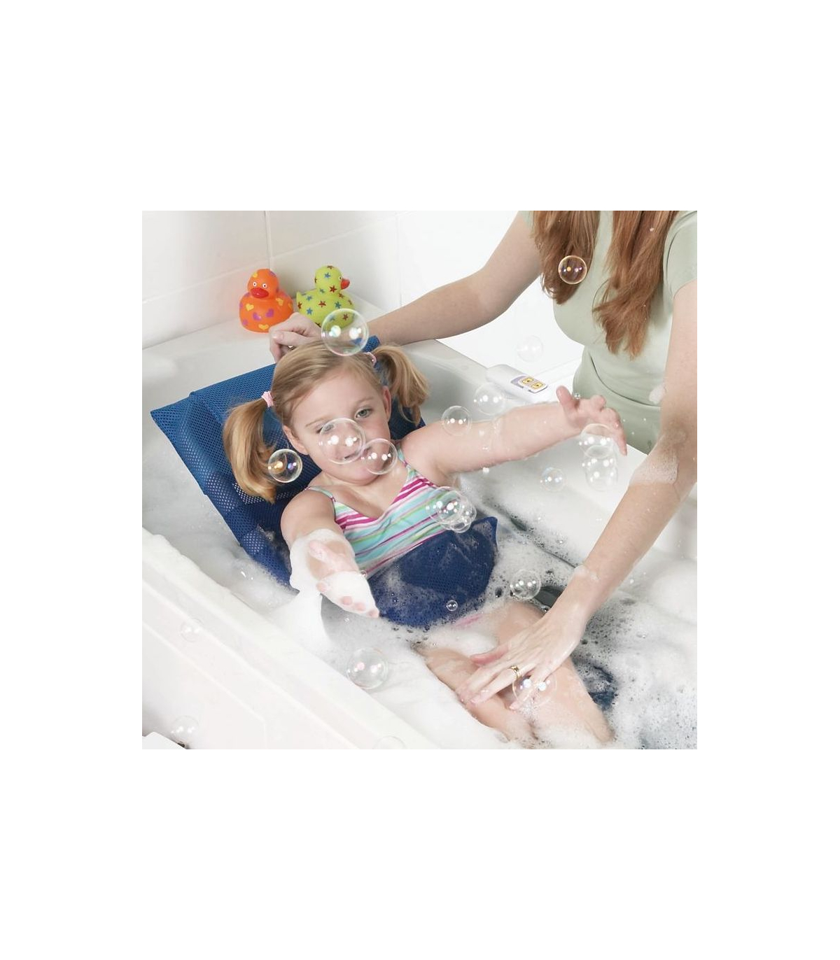 Ce produit médical permet à la tierce personne de faire facilement la toilette de l'enfant sans qu'il ait à le soutenir pendant le bain. Il est aussi réglable en hauteur de 6 à 43 cm.