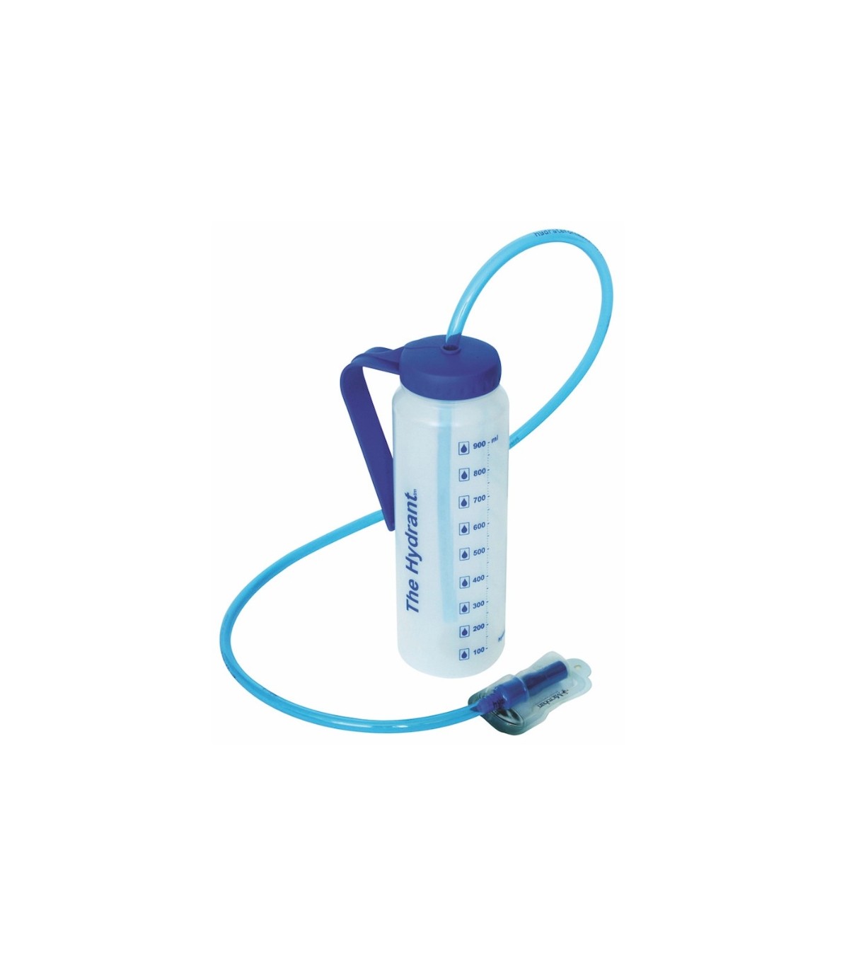 Le bidon d'eau de réhydratation est gradué jusqu'à 900 ml pour permettre de vérifier la quantité de liquide bu par le patient.