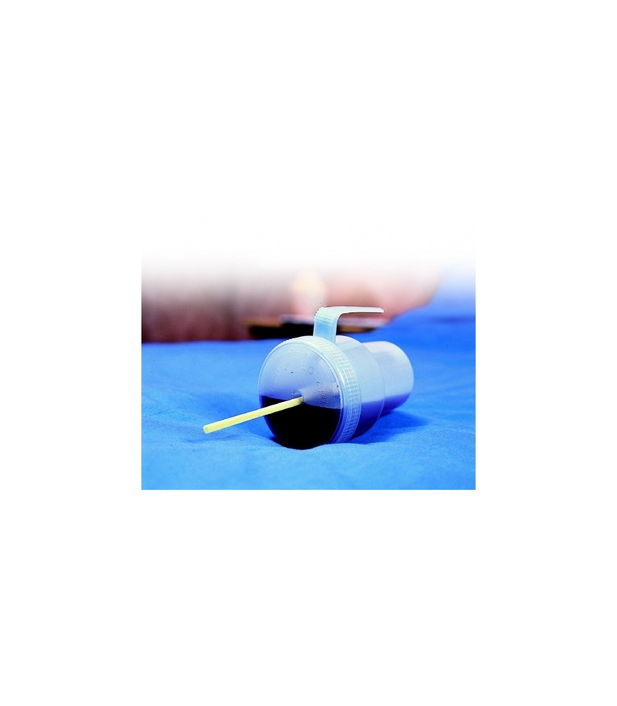 Le gobelet anti-renversement Kennedy permet à l'utilisateur de boire en position allongée, en insérant simplement une paille pliable à l'envers.
