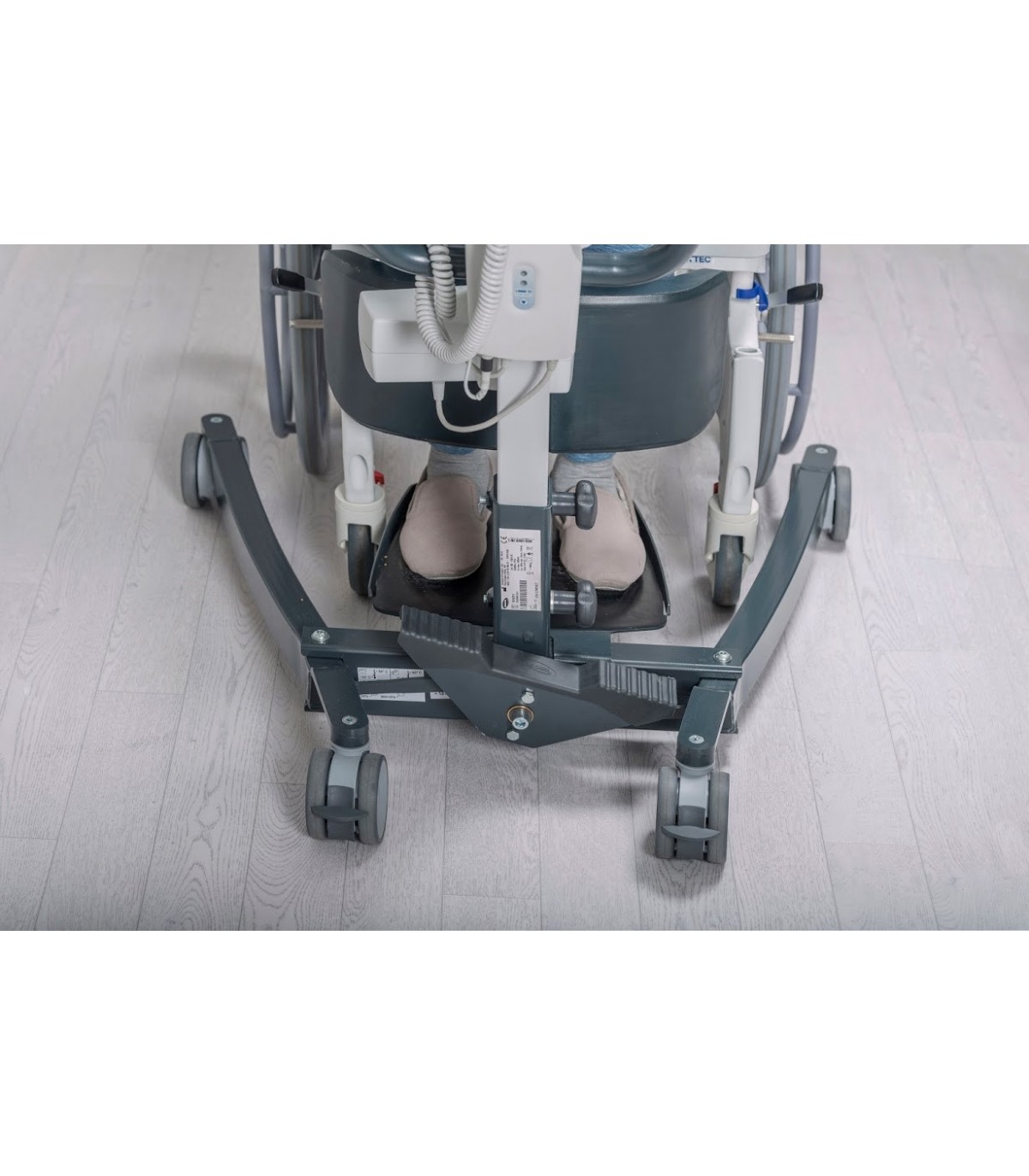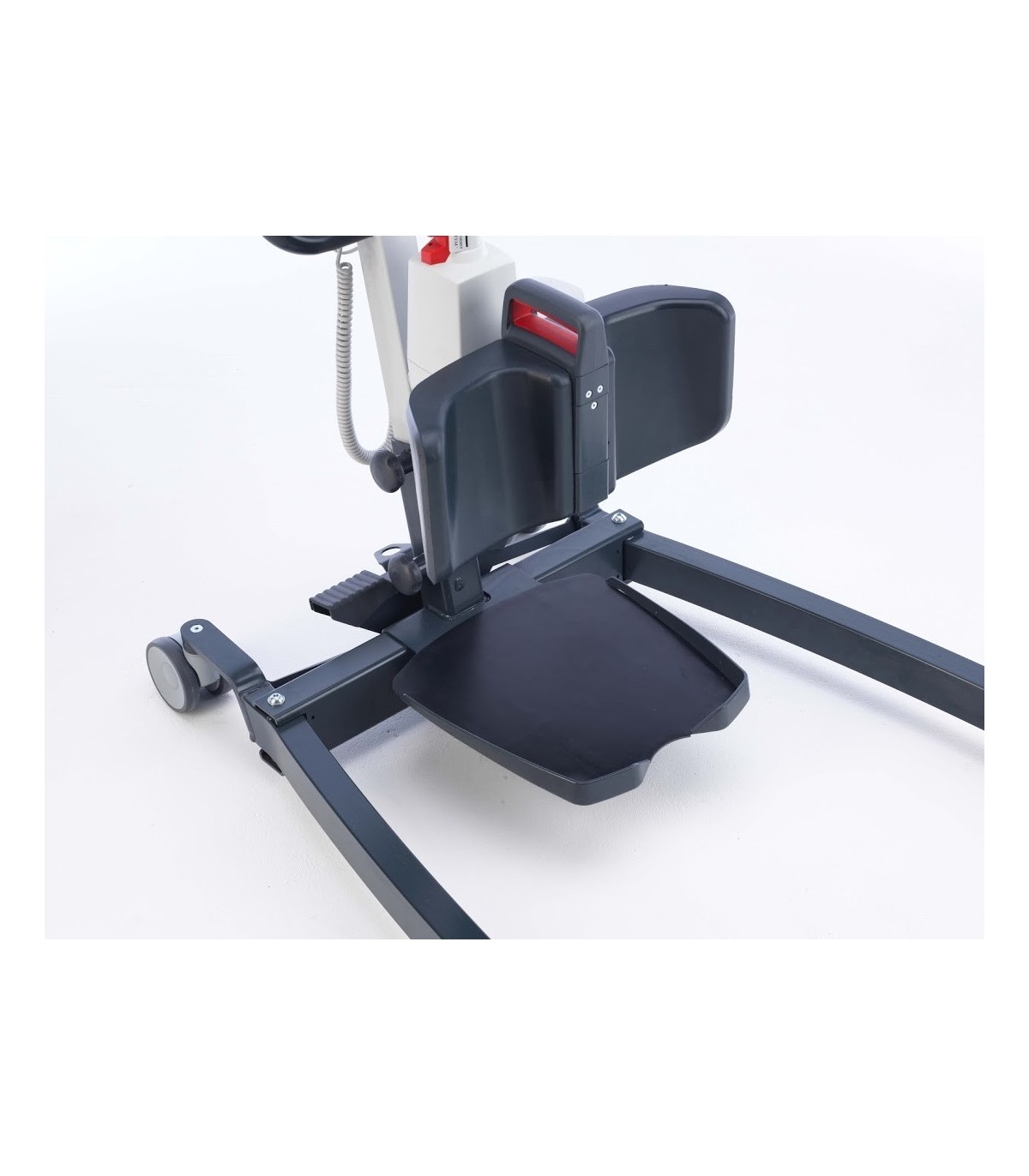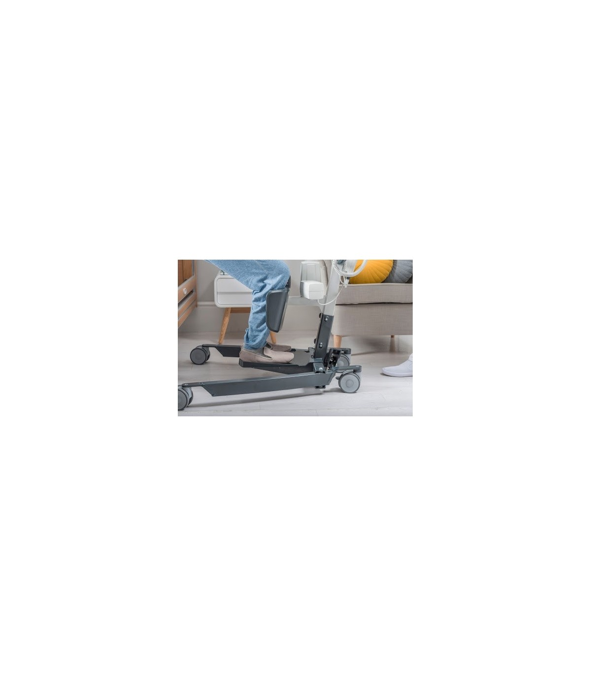 Pour plus de convivialité pour l'aidant, le lève-personnes Isa comporte une base incurvée aux dimensions réduites afin de permettre une meilleure maniabilité au produit.